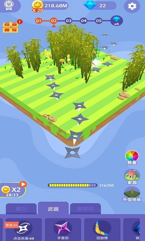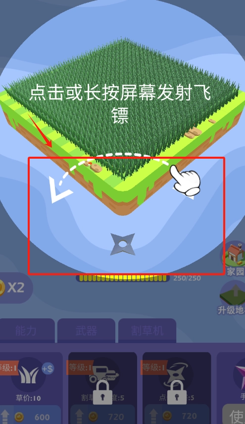 2、点击或长按屏幕发射飞镖攻击杂草,观察生长情况及时补刀,提升割草效率。