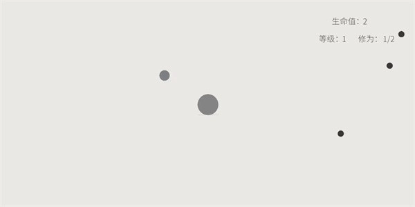 1、红框内大小灰球,注意左上黑点和右侧生命值3、等级1、修为0/0的状态显示。