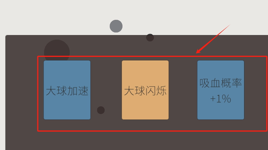 3、击三个红框选项大球加速、闪烁、吸血+1%,顶部灰黑点可能为技能触发键。