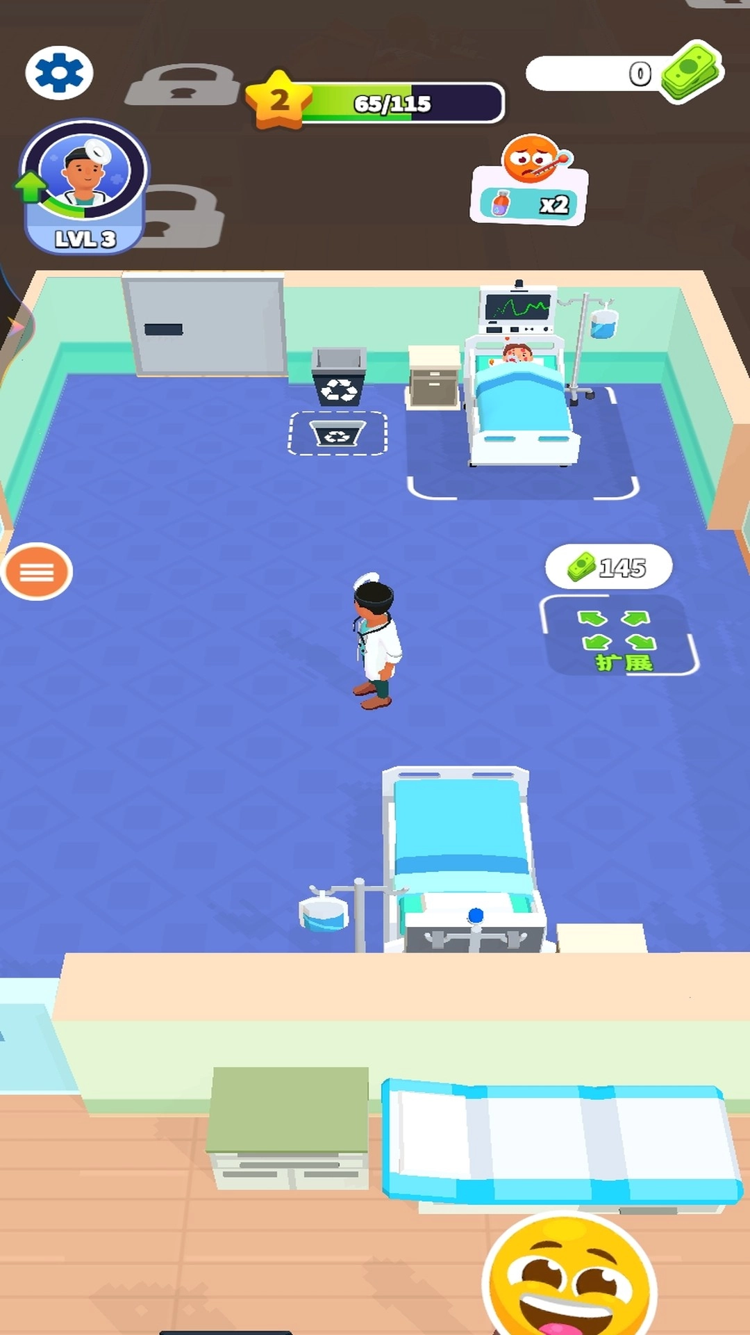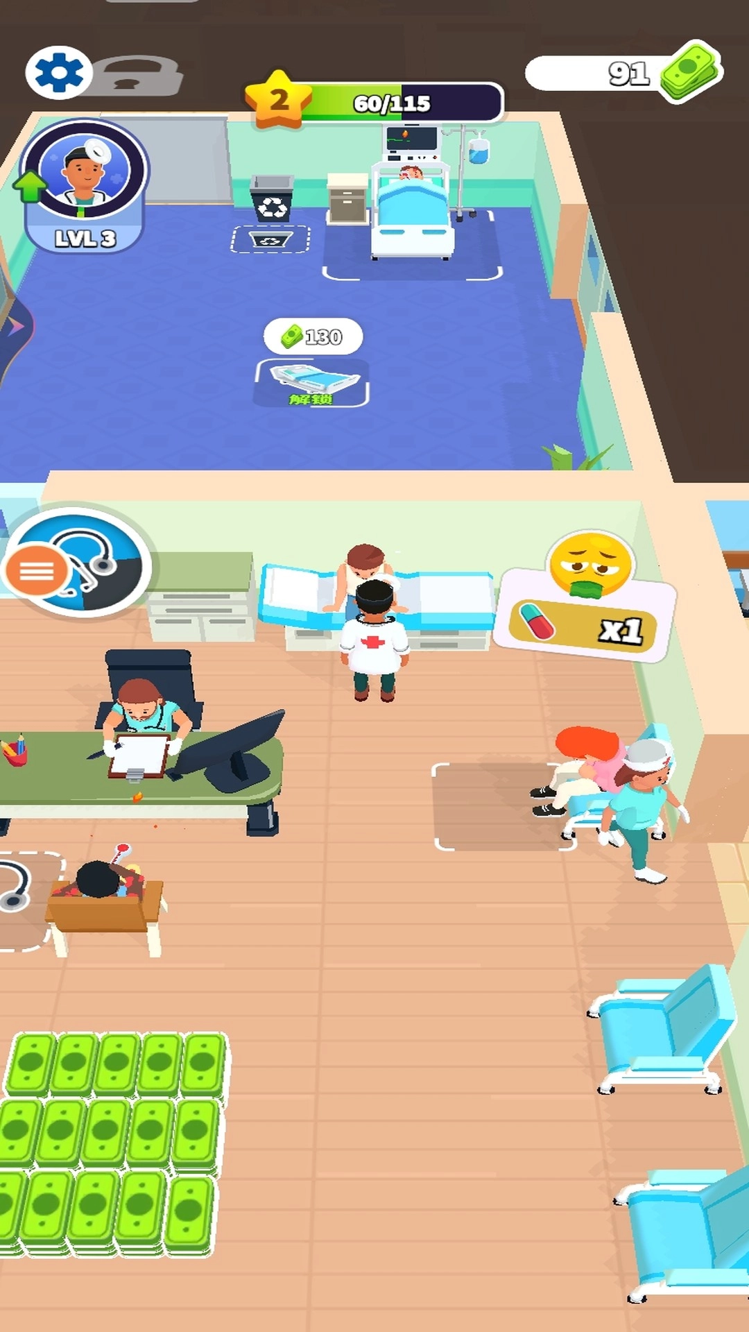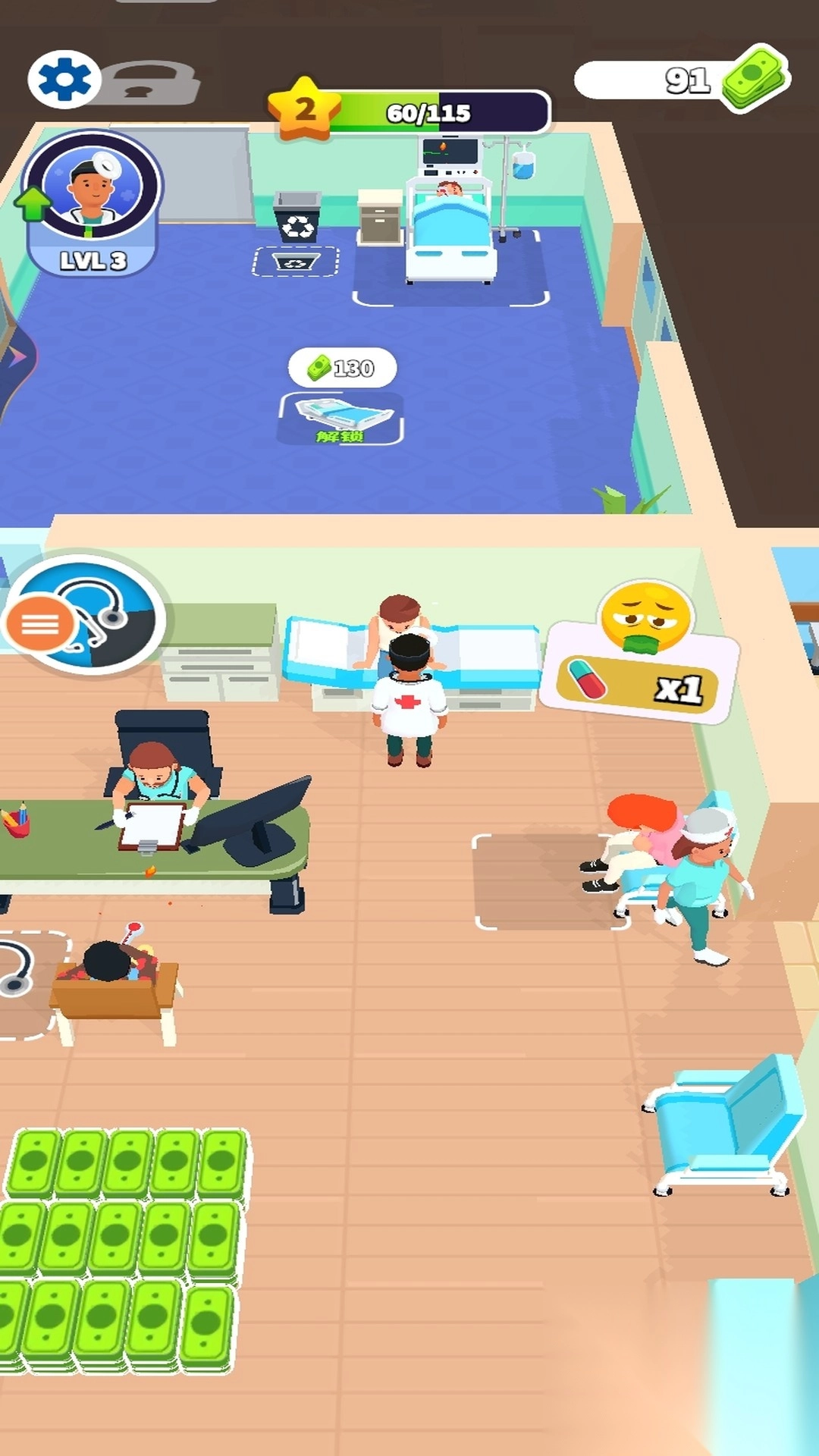 3. 玩家初始从一家小诊所开启经营之旅,依靠赚取资金,一步步拓展诊所规模,陆续解锁新的科室、对设备进行升级,同时增加床位数量。