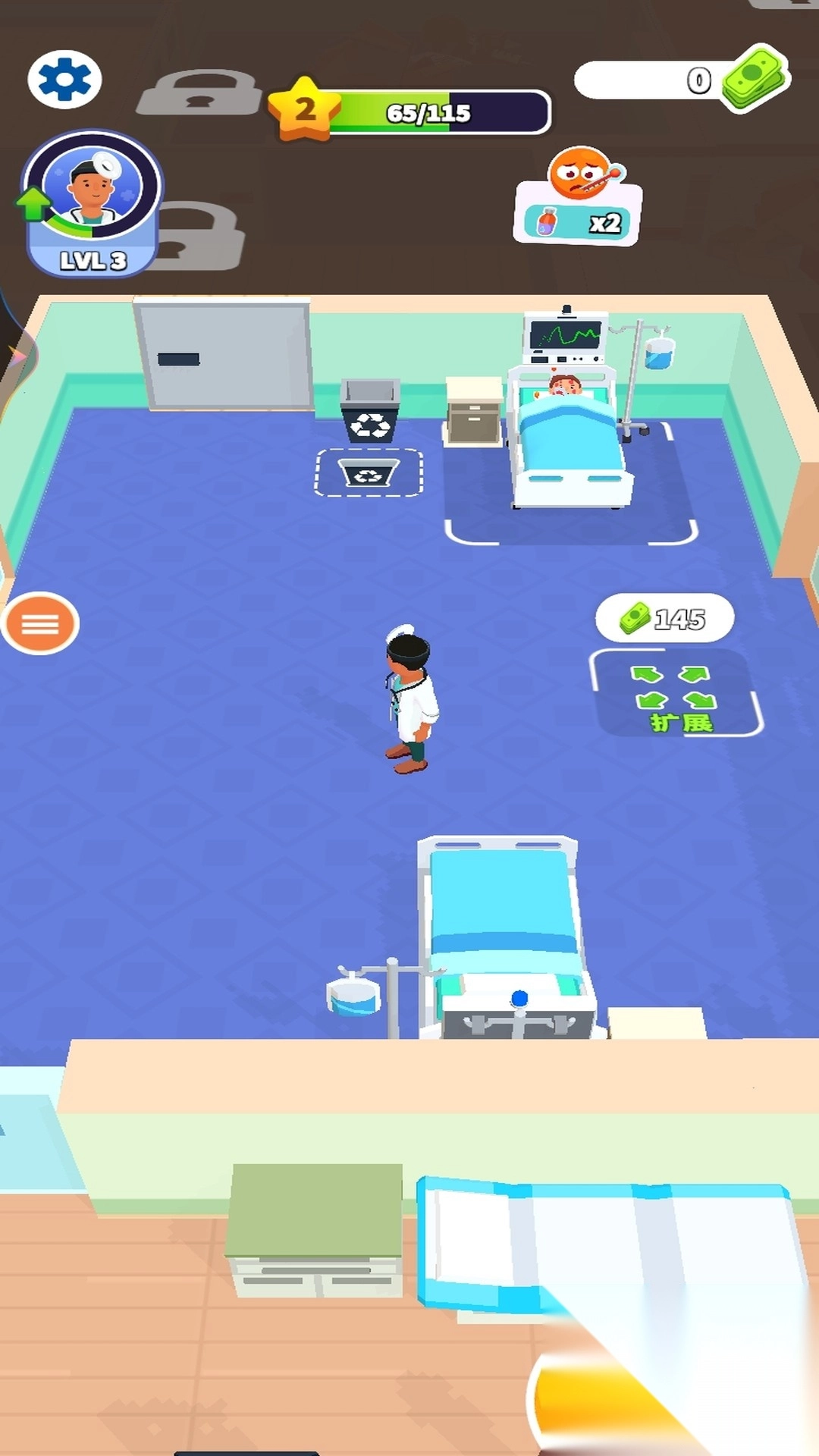 1. 玩家借助虚拟摇杆操控医生角色进行移动,以达成接诊、治疗、清洁等一系列任务,从而确保医院能够维持正常经营。