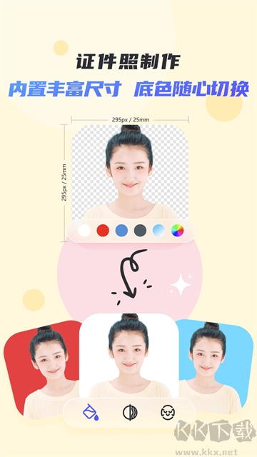 5. 利用手机制作证件照,可实现人像自动裁剪,还能对背景颜色及尺寸进行更换。