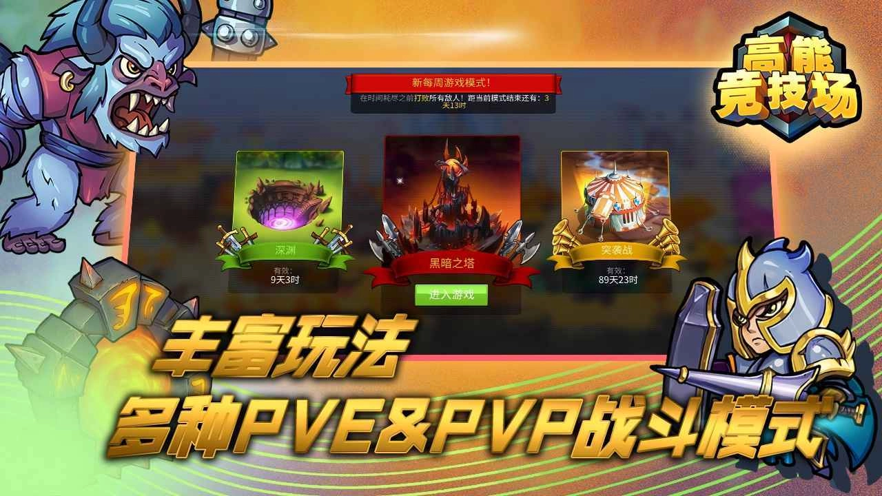 高能竞技场最新版本,是一款趣味性十足的休闲策略类游戏。游戏拥有丰富多样的玩法,诸如冒险、天梯、深渊、暗黑之塔、乱斗、突袭等等。玩家参与这些玩法模式,能够获取极为丰厚的奖励。在这款游戏里,玩家将化身为冒险者,需要培养形形色色的战士与魔法师,使其融入自己的团队。