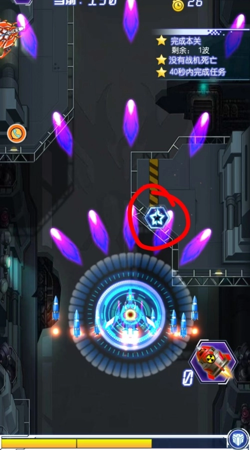 在战斗过程中,会随机生成技能,通过左右移动来获取,从而能够升级飞机。