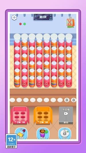 大爷来闯关是一款趣味十足的分类解压休闲游戏。在游戏里,玩家得依据订单要求,从大量饮料罐中精准识别出包装相同的产品,并进行归类。玩家可通过拖拽或者点击的方式达成任务目标,尽情体验整理带来的满足感。该游戏画面简洁宜人,操作简便直观,非常适合在闲暇时光用来放松身心,同时还能提升专注力与反应速度。