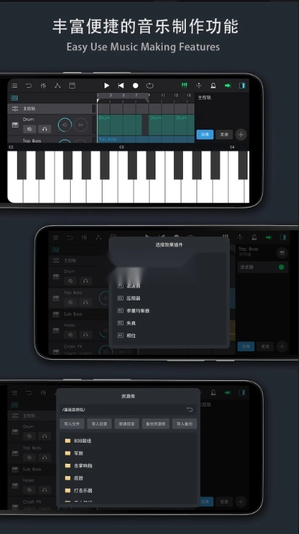 音乐制作工坊,作为一款在移动端运行的音乐创作软件,功能极为强大。其操作界面简洁且直观,即便是初次接触音乐制作的新手,也能够迅速掌握使用方法。软件配备了丰富的音色库,其中包含各式各样的乐器音效,并且支持实时录制与编辑功能。这使得用户无论身处何地,只要灵感闪现,都能够及时捕捉,并创作出独具个人风格的音乐作品。
