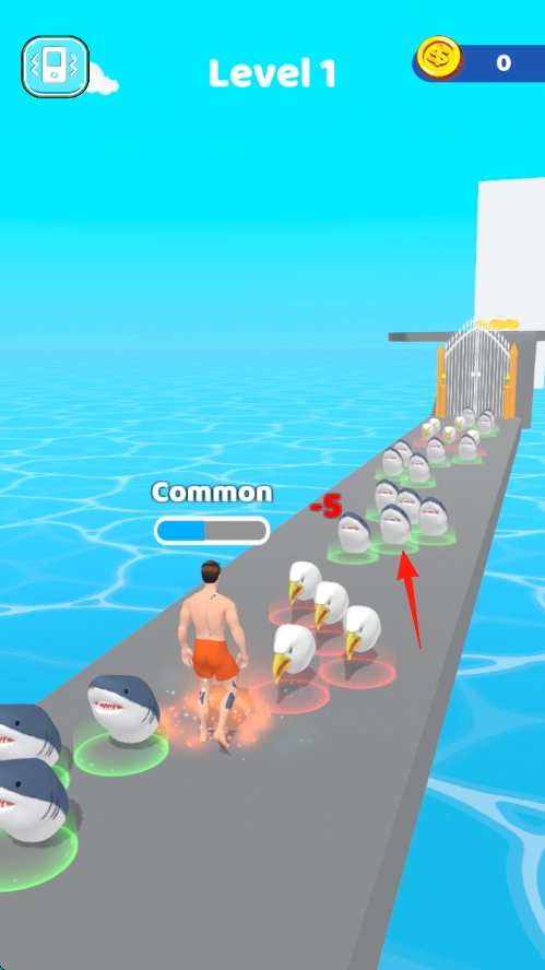 3、进入Level2,组合吞噬(鲨鱼+海鸥),解锁新形态,冲刺终点大门,完成进化,开启下一关。