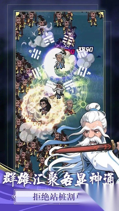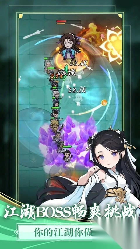 3、江湖侠客主题:围绕江湖侠客展开,构建侠客长蛇阵进行征战。其独特的造型与主题设定,营造出别具一格的割草氛围。