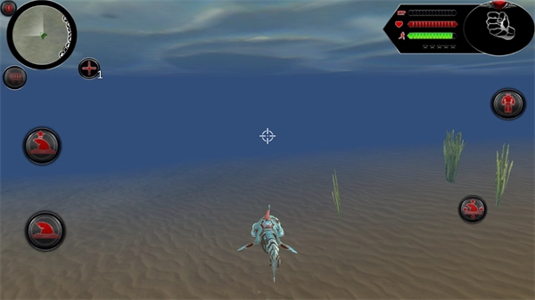 3、玩家在水中可以切换成其他状态,比如鲨鱼形态,这样能在水中肆意移动。