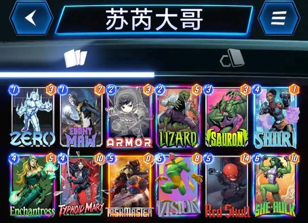 在漫威终极逆转里,苏芮大哥卡组是以苏芮搭配各类大哥为核心的策略卡组。下面为新手推荐一套三池苏芮大哥卡组,并介绍其玩法:
