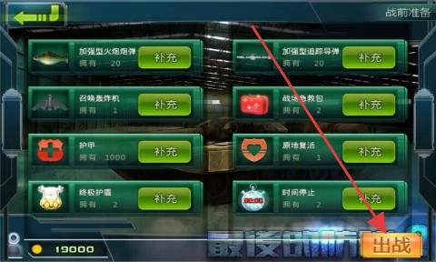 1、战前准备界面,检查弹药、急救包等物资,点击【补充】缺的道具,备好后点【出战】进入战斗。