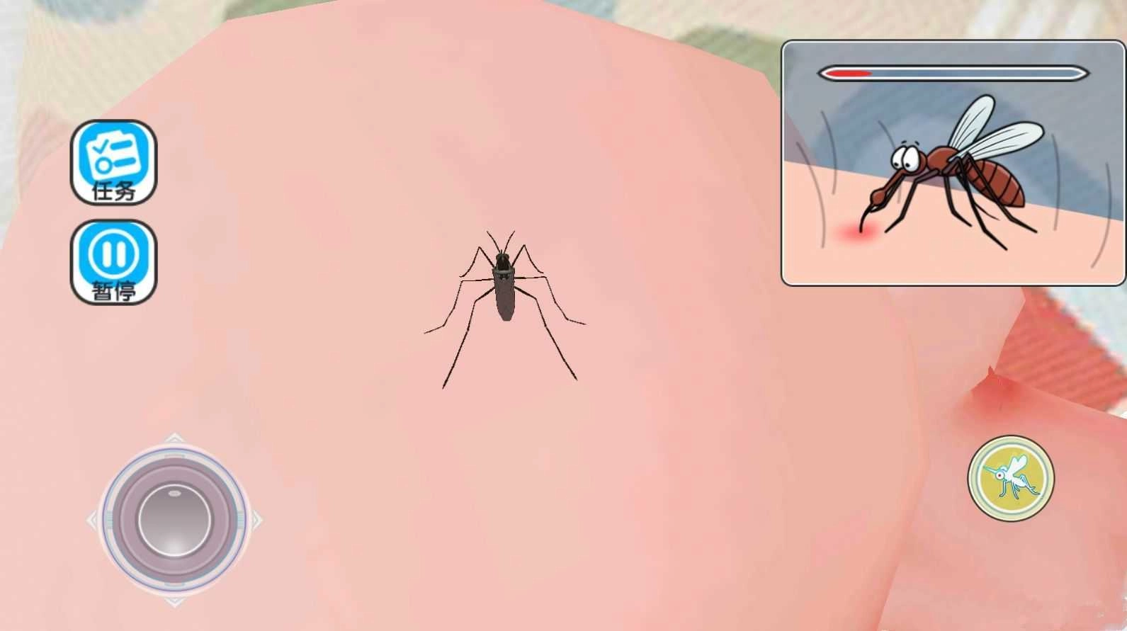 蚊子骚扰模拟器整体画风皆为卡通风格,游戏开始时,玩家将化身一只蚊子,不断执行各类吸血任务。