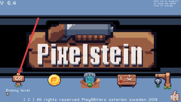 1. 轻点“Enemy-level”(敌人等级)按键,进入【Pixelstein】,挑选难度,开启像素射击冒险之旅。