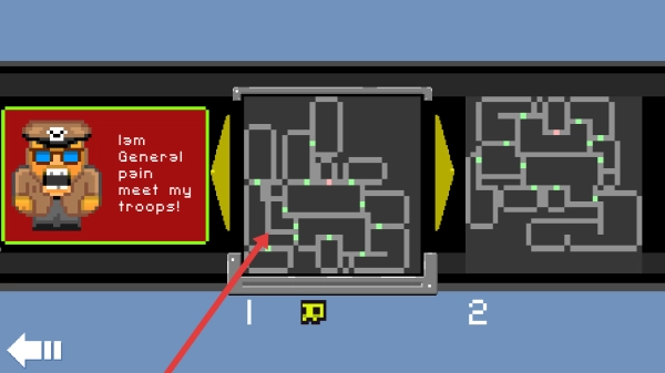 2、于地图界面,点击箭头所指的迷宫地图(1号),进而进入关卡,着手准备探索并消灭General - pain的部队。