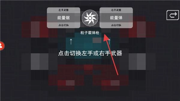 3、武器界面,可切换“能量锯”“能量弹”等武器,点击切换左右手武器,搭配“粒子霰弹枪”,备战。