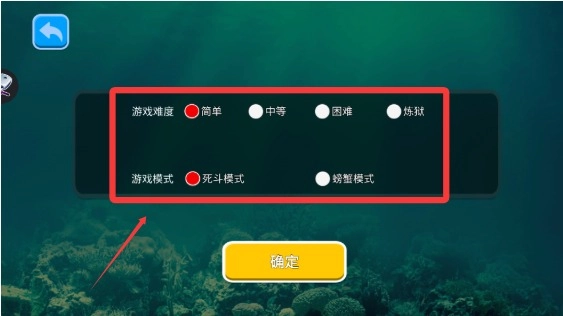 1、在主界面选择“螃蟹模式”进行初始培养,靠吞噬海星、贝壳及小螃蟹积累鱼币,为后续挑战打下基础。