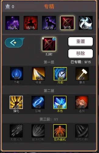 2、玩家等级提升时,技能会逐步解锁。每通关一层,可获得一点专精点。前期通常采用扫射方式慢慢消耗敌人,优先升级敏捷、体能、护甲以及击中回复。