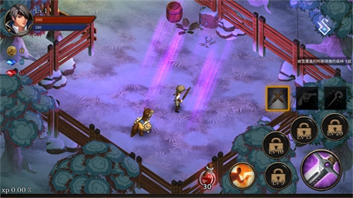 3、在游戏中,通过虚拟摇杆来操控角色移动,点击画面右侧的攻击按键与技能按键展开战斗。