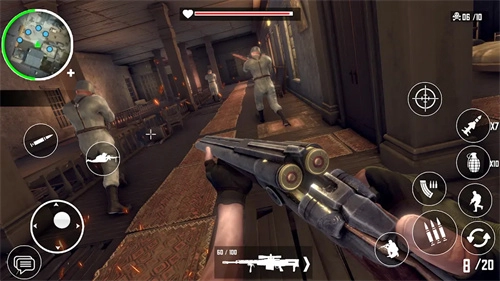 3、紧接着,我以第一人称视角投入战斗,通过操控左侧的虚拟摇杆来控制角色移动,在右侧屏幕上划动以操控准星,点击射击按钮展开攻击。