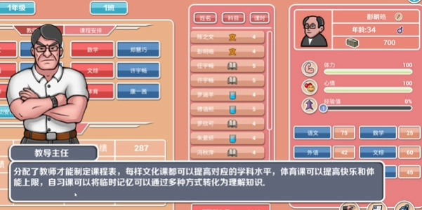 2、在游戏里,还会依据学生的特性来安排与之匹配的老师,这一点十分有趣。