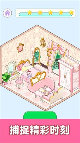 4、玩家需依据不同的关卡主题对房间空间展开布置。布置完成后,系统会依据玩家的布置状况给出星级评分,并提供相应奖励。