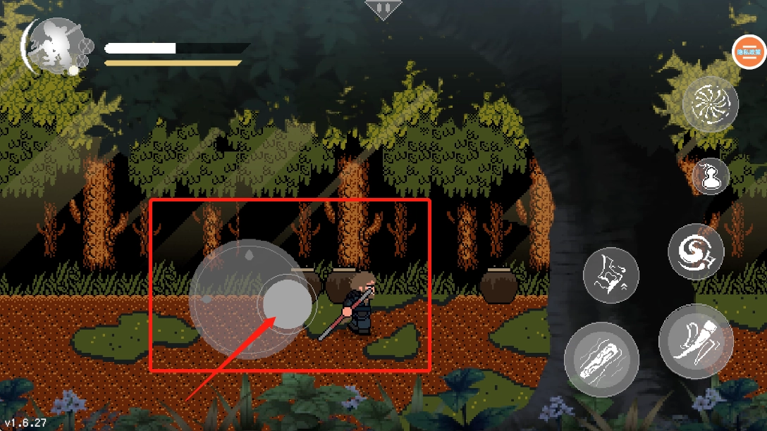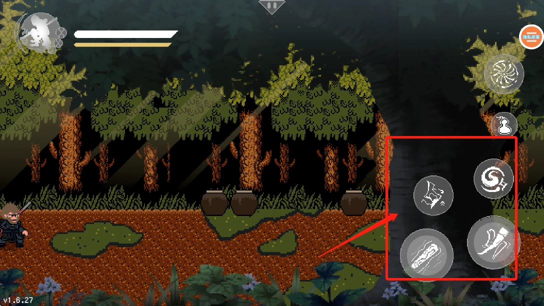 2、在屏幕右侧的操作是使用技能,以此来攻击怪物。