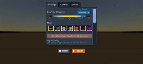 3、随后对地图中月亮的颜色、亮度等进行调整,完成设置后,点击start。