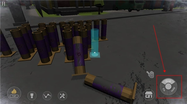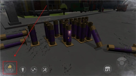 6、摆放妥当后,我们滑动屏幕,让画面对准烟花,接着点击旁边的打火机,只需点击一次,就能引燃引线,这时其余烟花也会一同被点燃。