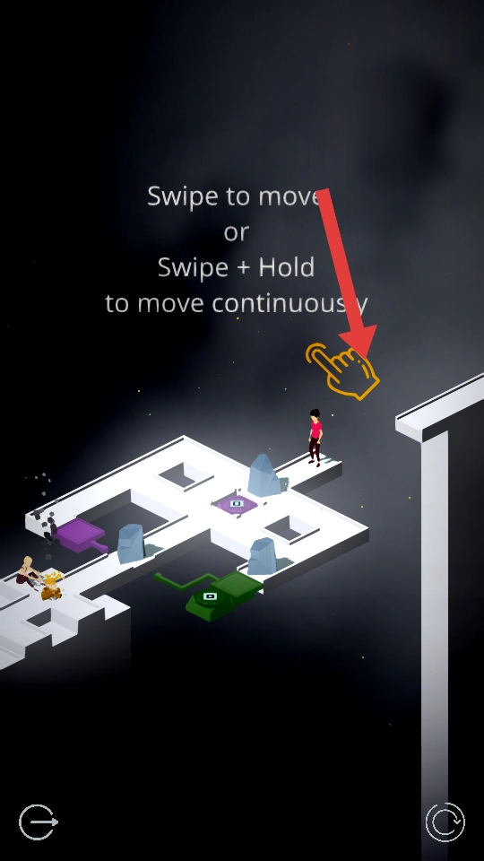 1. 通过滑动屏幕来操控红衣角色移动,当遇到阶梯时,滑动摇杆向上即可攀爬;要是靠近石块,可试着推动石块,借助它搭建出一条路径。
