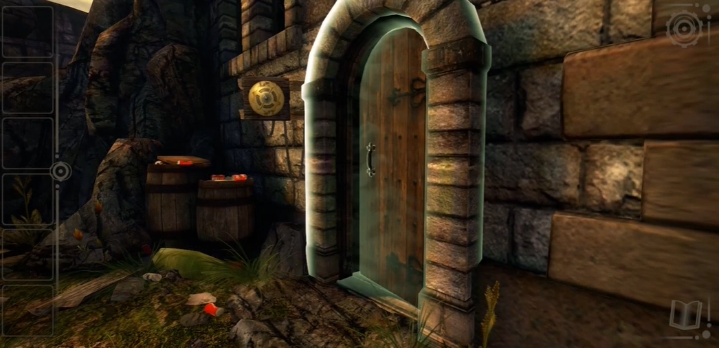 3、接着我们四处看看,便会发现那个带有提示的地方,点击之后,我们就会抵达城堡的入口处,把门打开就能进去。