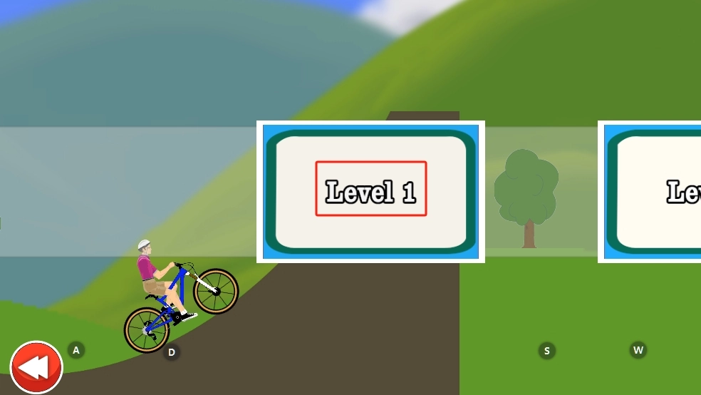 1. 进入作品后,首先熟悉一下操作,通过滑动屏幕来控制独轮车的平衡与方向,接着点击关卡1,开启山丘骑行挑战。