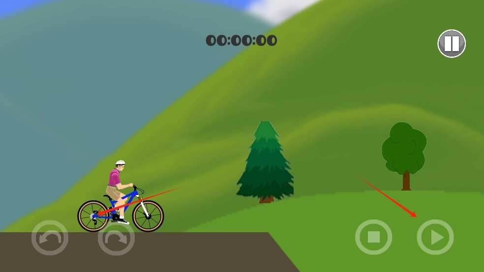 2、在骑行过程中,依据地形状况,通过右侧按钮来操控前进。当遇到斜坡时,要及时进行调整。利用绿色地形实现加速,避开颠簸路段,朝着终点方向不断前行。