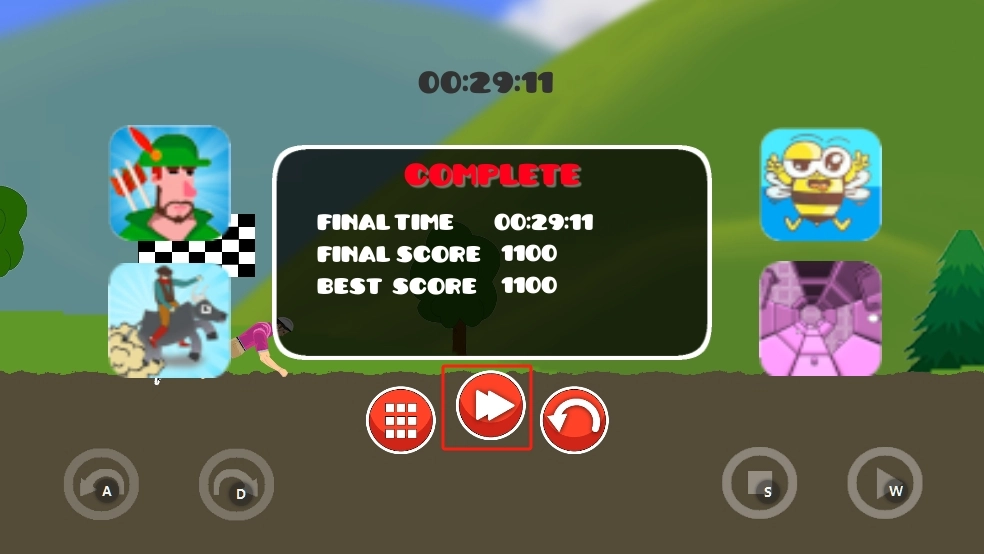 3、当你完成关卡后,界面上会显示时间和分数。此时,点击红框中的箭头按钮,就能进入下一关,去挑战更为复杂的骑行路线与地形。