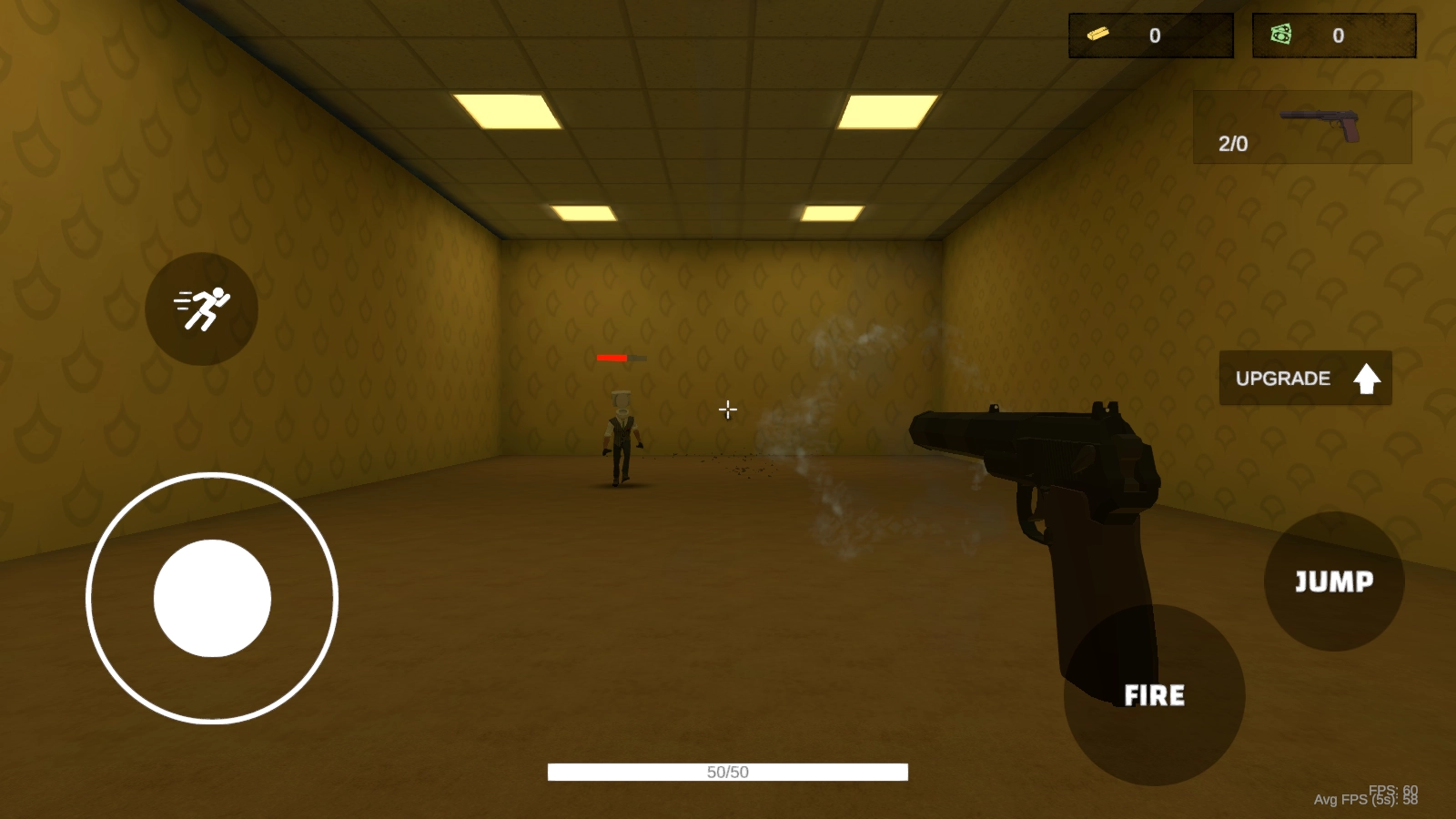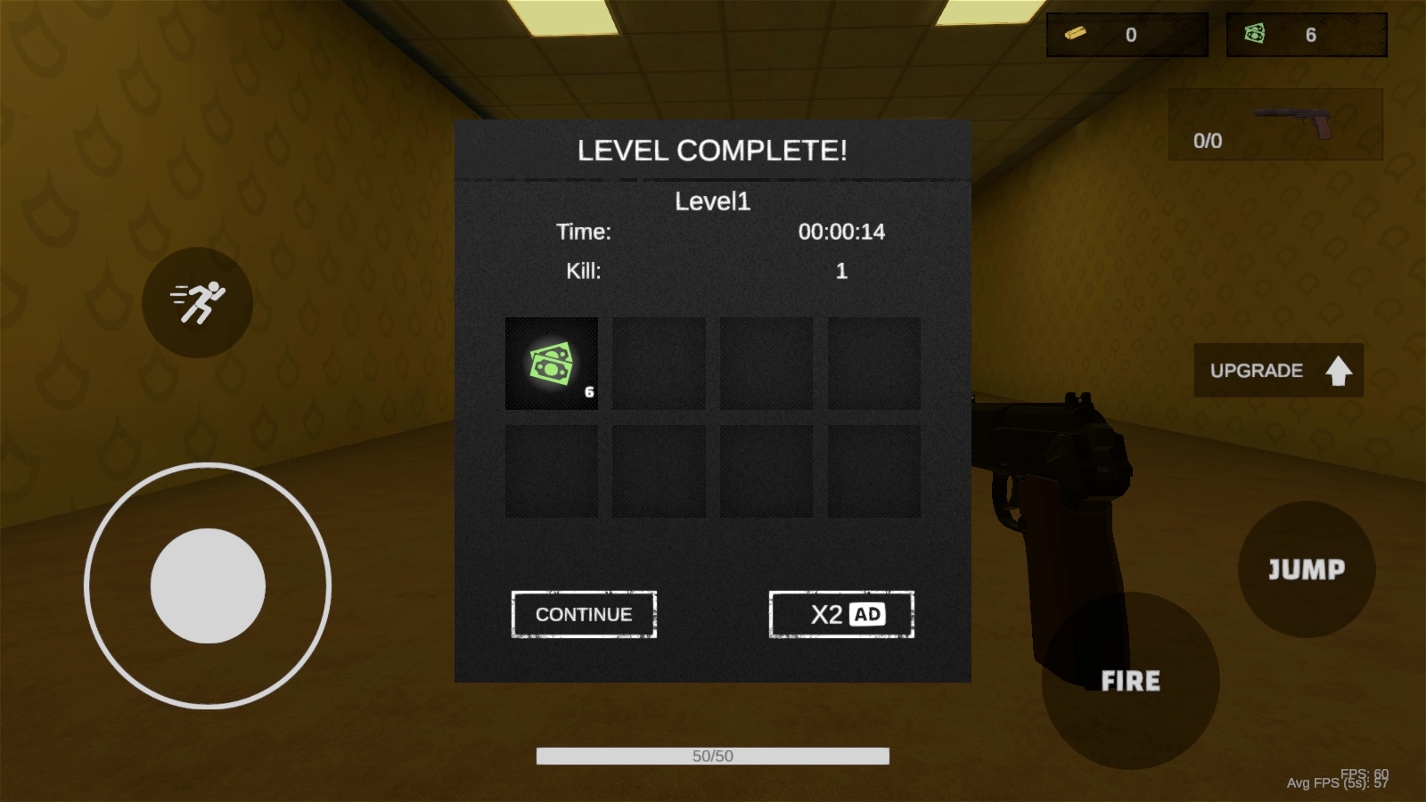 3、倘若你想要提升武器性能,可点击UPGRADE按钮来进行升级,同时持续消灭敌人,以完成关卡任务。