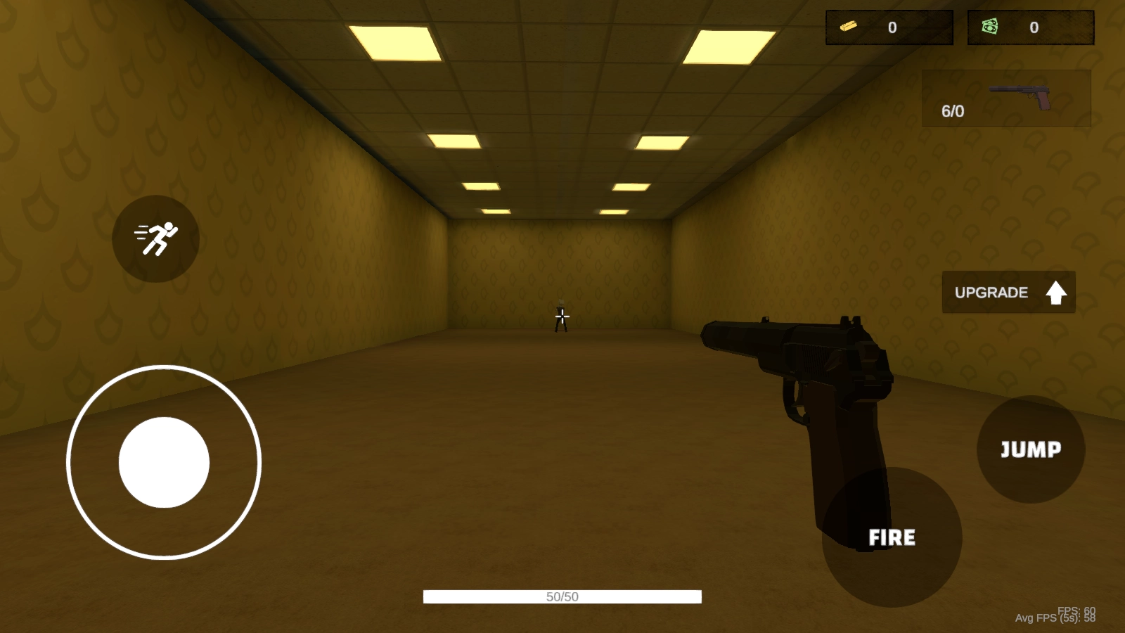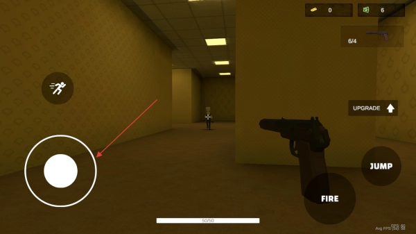 1. 开启游戏后,利用屏幕左下方的虚拟摇杆来操控角色移动,于呈现黄色调的走廊场景里展开探索。