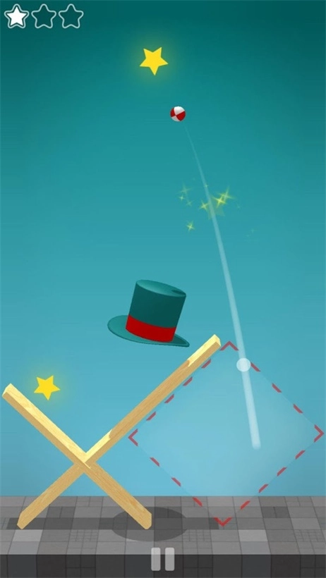 4. 玩家需精确操控小球,让它顺利落入魔术帽内,以此完成关卡挑战。