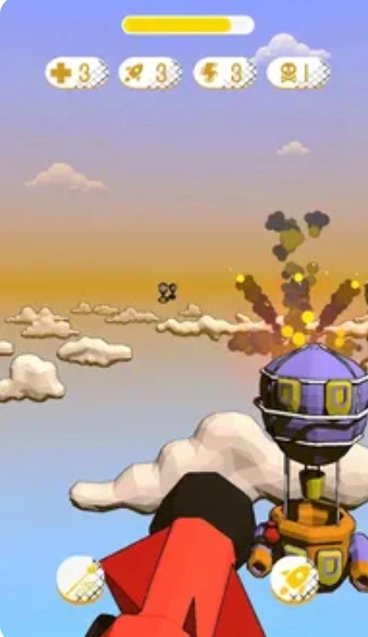 1. 在飞行过程中,玩家需灵活操控,躲避敌人攻击,与此同时,借助飞艇技能对敌人造成伤害。