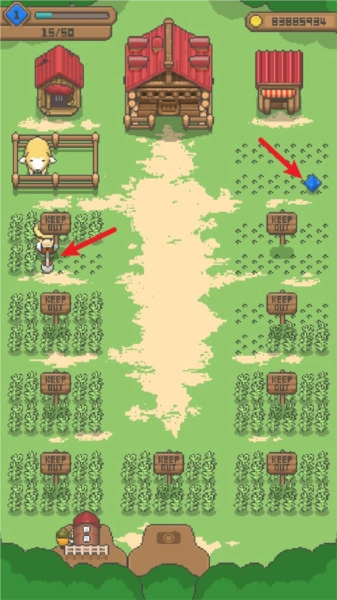 1在游戏里,玩家只要点击角色,就能操控角色去收割土地上的杂草。