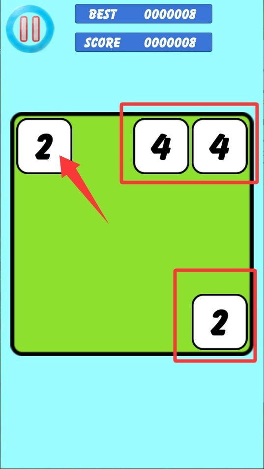 2、推动数值相同的方块,使其碰撞,就能完成合并。每次成功合成,都会产生更高一级的数字组合。