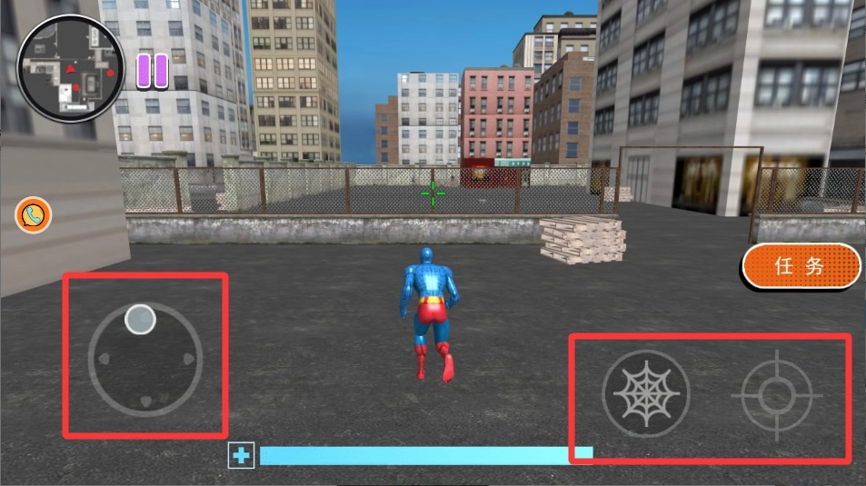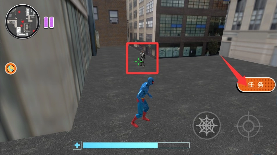 3、在游戏进程里,向左滑动屏幕就能操控角色的移动方向,要是快速双击屏幕,角色就会发射蛛丝来实现位移,而长按屏幕的话,便能发动攻击招式。