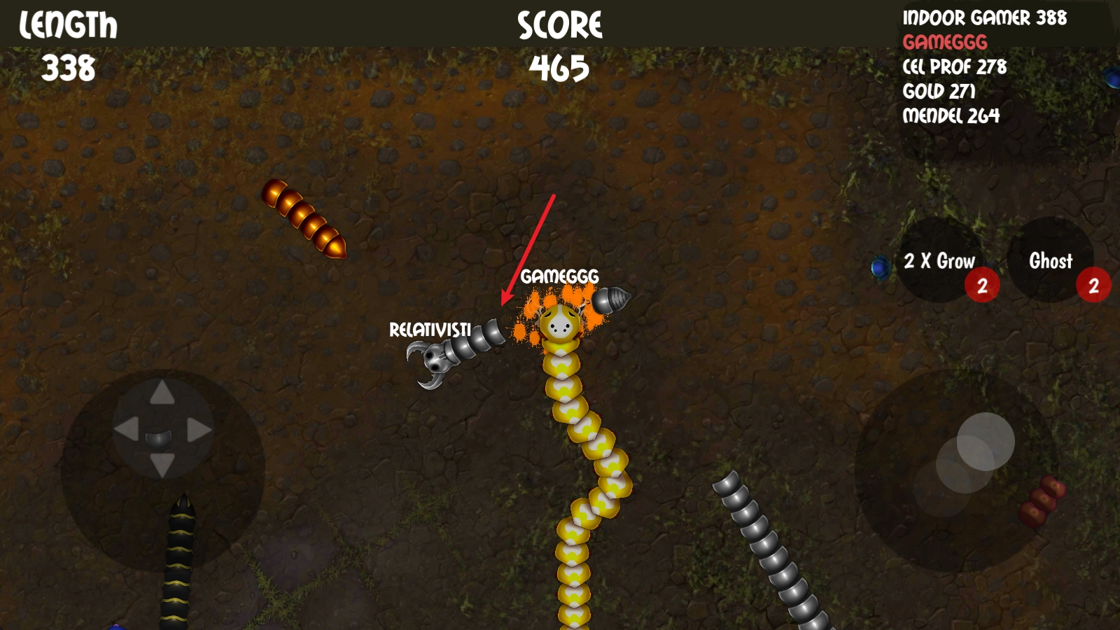 4、与贪吃蛇不同,在这款游戏中,我们能够直接对其他蜈蚣发起攻击,并且可以把它们从中间截断。