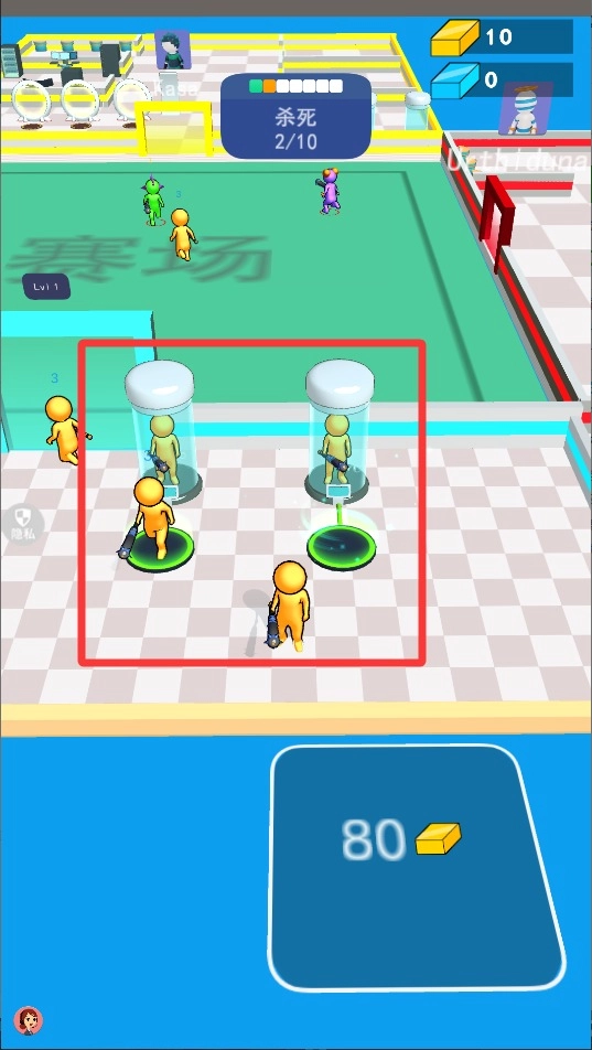 2. 收集场景中散落的金币,当金币积攒到一定数量,点击建造按钮,就能搭建防御工事或者升级武器装备。