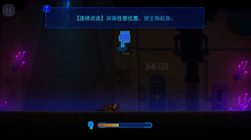 5、依照其要求开启互动游戏,【连续点击】屏幕的任意地方,让主角站起身来。