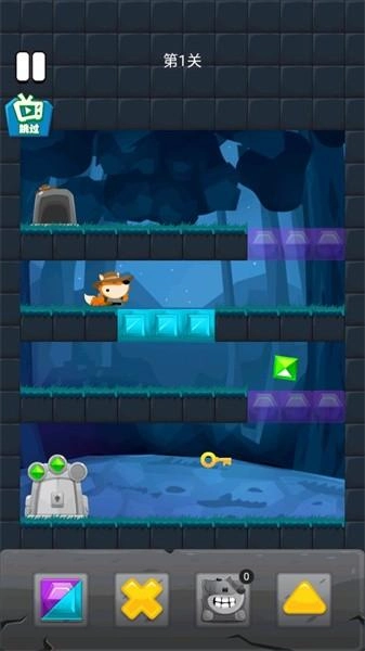 2、当进入第1关后,需留意蓝色方块所处位置,规划好狐狸的前进路线,在恰当的时机点击左下角的切换按键,将方块切换成能够直接穿过的状态。