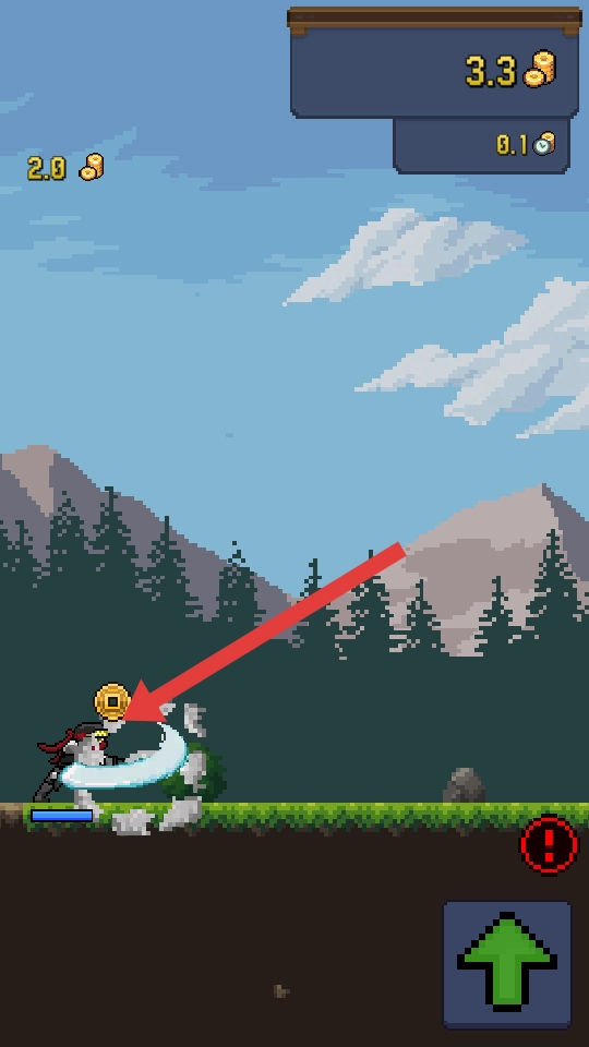 2、在游玩过程中,若出现绿色箭头图标,点击此图标,便会触发特殊效果,帮助角色更高效地获取金币。