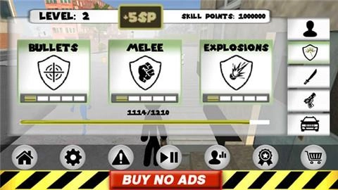 3、你将摇身一变,成为整座城市里最为强大的火柴人英雄,手握各类武器,还具备种种强大能力。