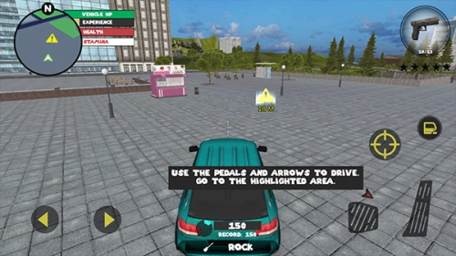 在游戏操作中,左侧可实现移动与加速功能,右侧对应绳索操作,还能进行攻击(攻击时可结合跳跃动作)以及单纯的跳跃操作。右上侧区域则用于武器更换,同时血量与经验的显示会实时更新,所有信息一目了然。玩家可凭借自由多样的玩法,与其他帮派人物展开交火。在交火过程中,成功杀人能获取经验,杀人数累积到一定程度会产生星级。一旦星级出现,警察以及其他附近角色会对你格外“关照”,向你发起猛烈进攻。而如何在这场激烈的对抗中存活下来,以及怎样将其他人物成功击杀,就是玩家需要完成的任务。