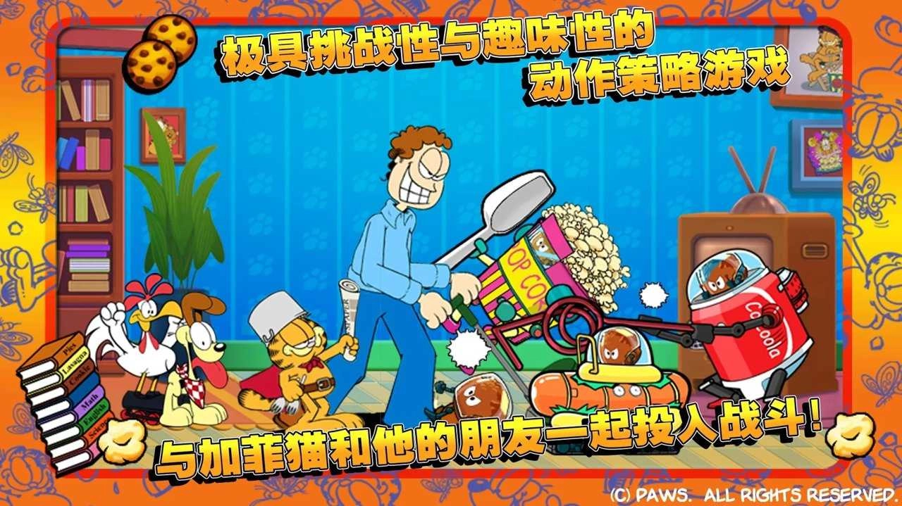 2. 加菲猫能够借助爆米花召集同伴,并吐出西瓜籽。点击屏幕下方的工具槽,就能使用技能以及召唤同伴,不过你得拥有足够的爆米花,才能成功将他们召唤出来。