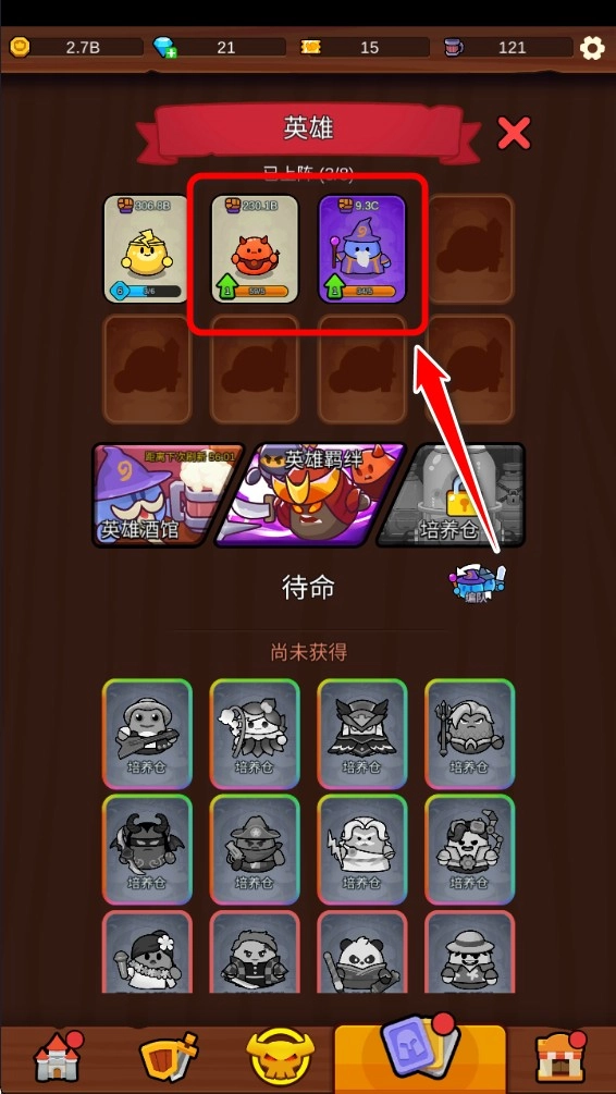 3、玩家还可自行对出战队伍进行排兵布阵,自由选择上阵的英雄。