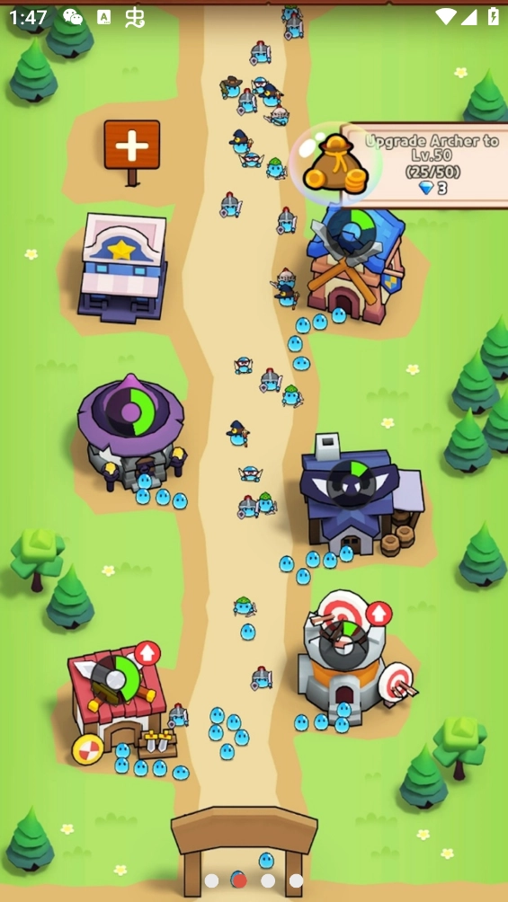 1、当玩家进入史莱姆村游戏后,页面下方会出现各类技能升级选项,这些技能是所有小兵都通用的能力。
